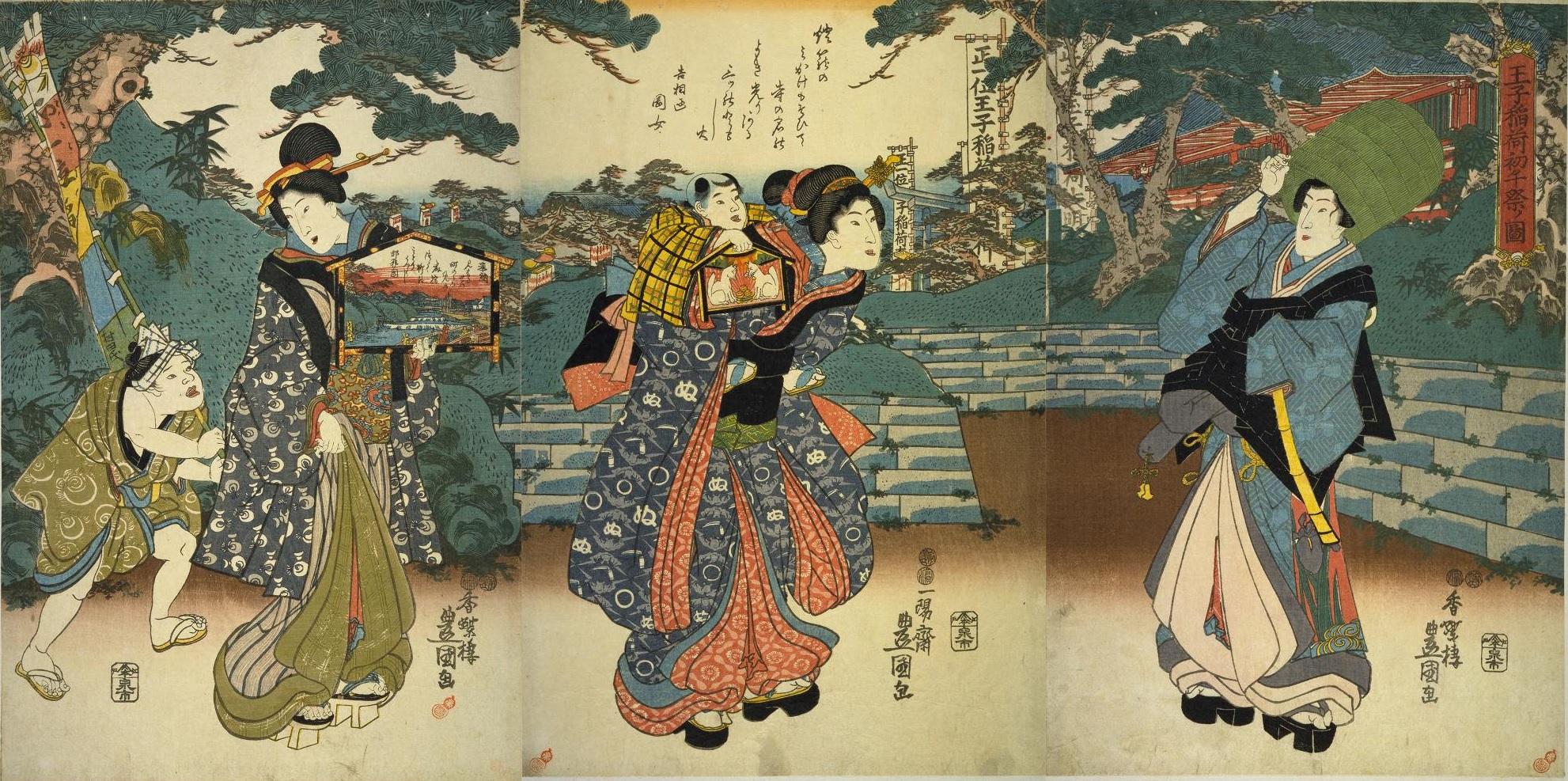 余寒と不景気を吹き飛ばすように稲荷社周辺にも市が立つ盛大な祭りとして、錦絵にも多く描かれています。