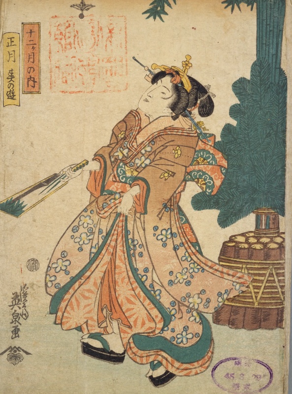 新年行事として、初詣や愛宕山での強飯式、鏡開きなどが錦絵に描かれています。